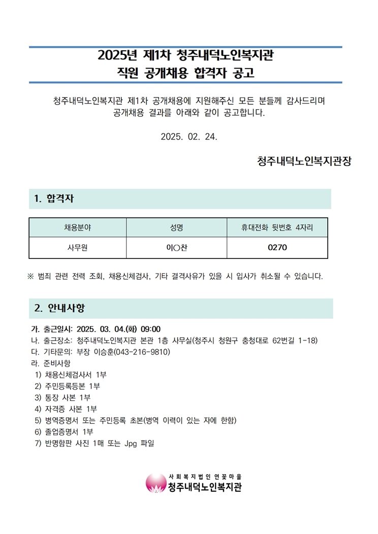 | 2025년 제1차 공개채용 합격자 공고 | |||