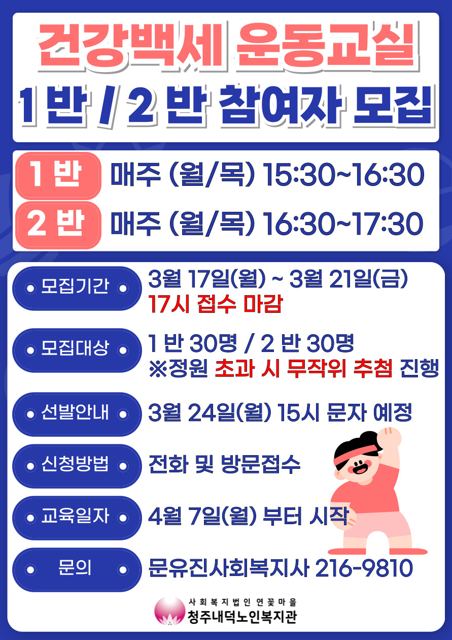 | [모집] 건강백세운동교실 참여자모집 | |||
