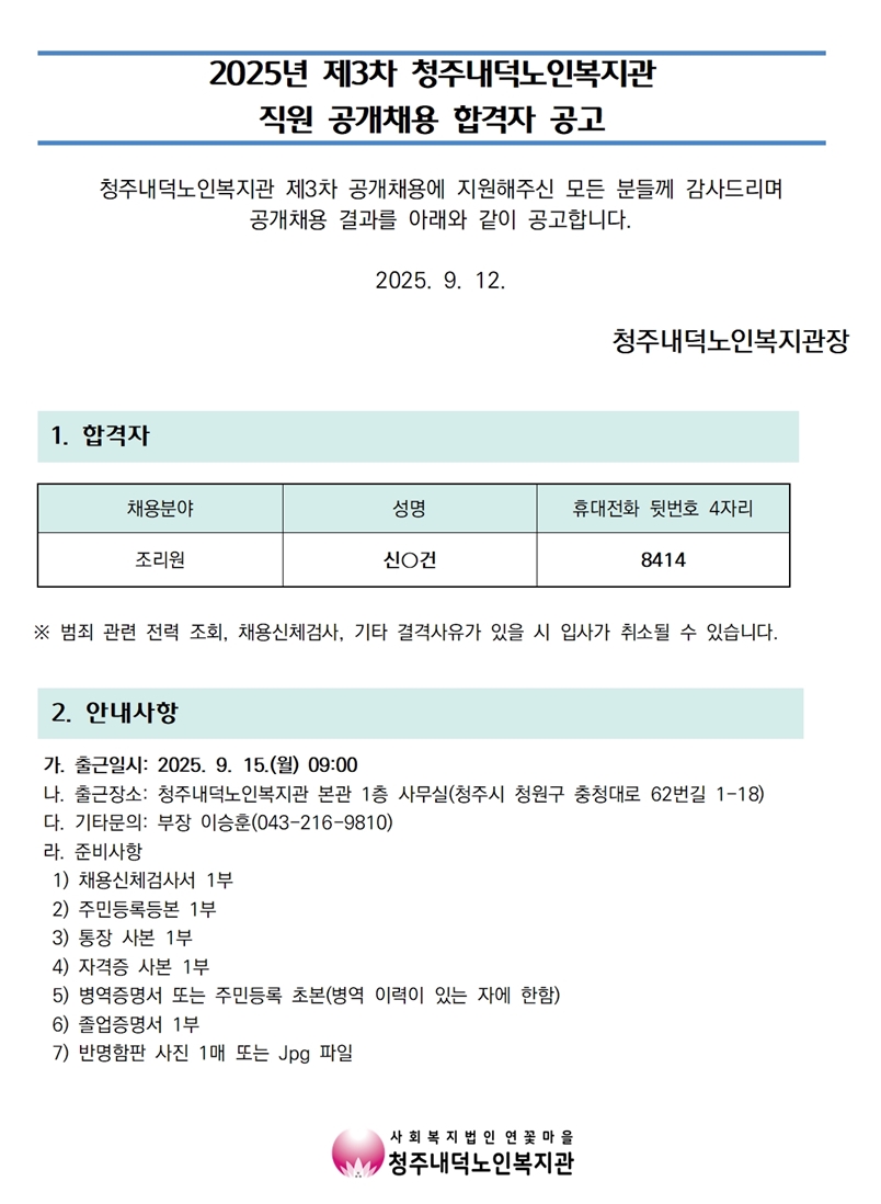 | 2025년 제3차 공개채용 합격자 공고 | |||