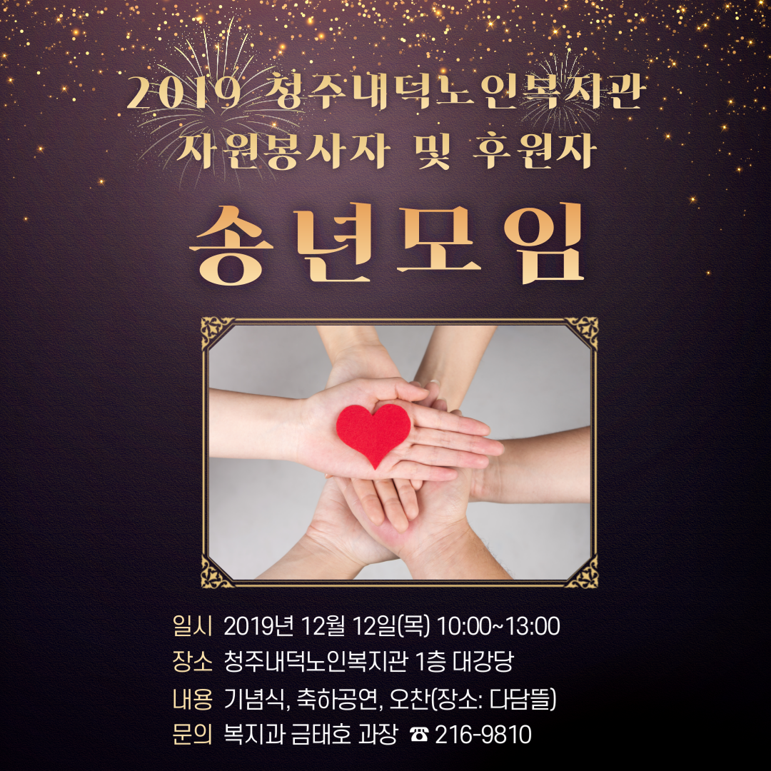 | 2019 자원봉사자 및 후원자 송년모임 개최 안내 | |||