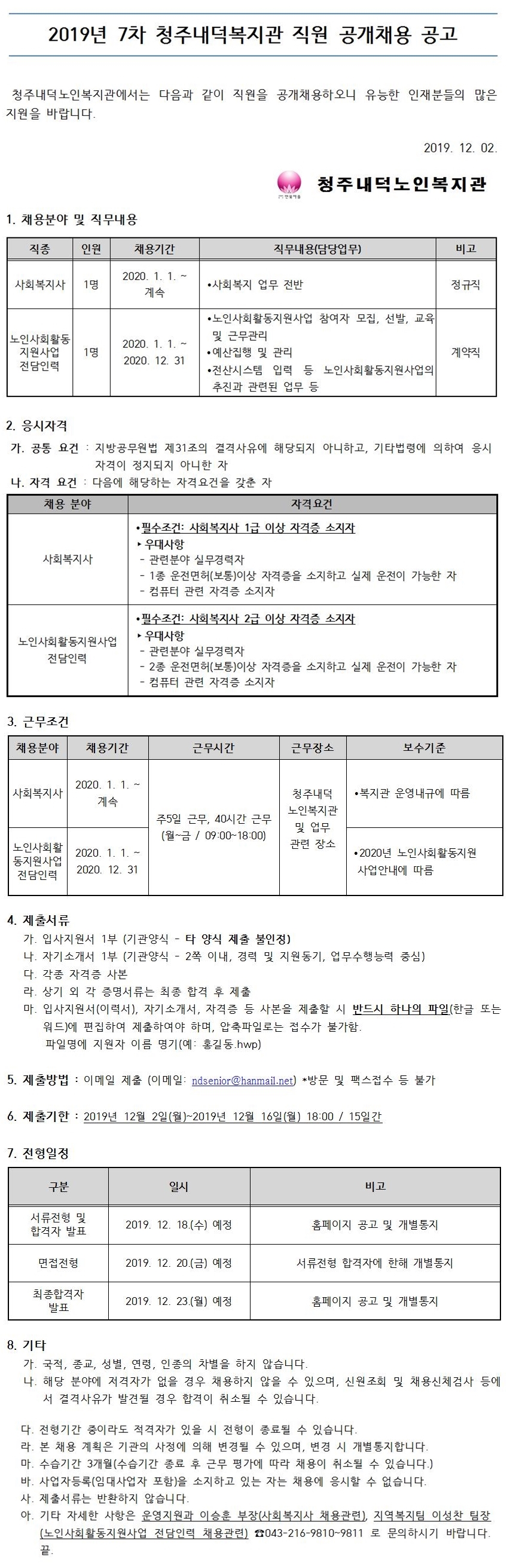 | 청주내덕노인복지관 제7차 직원채용 공고 | |||