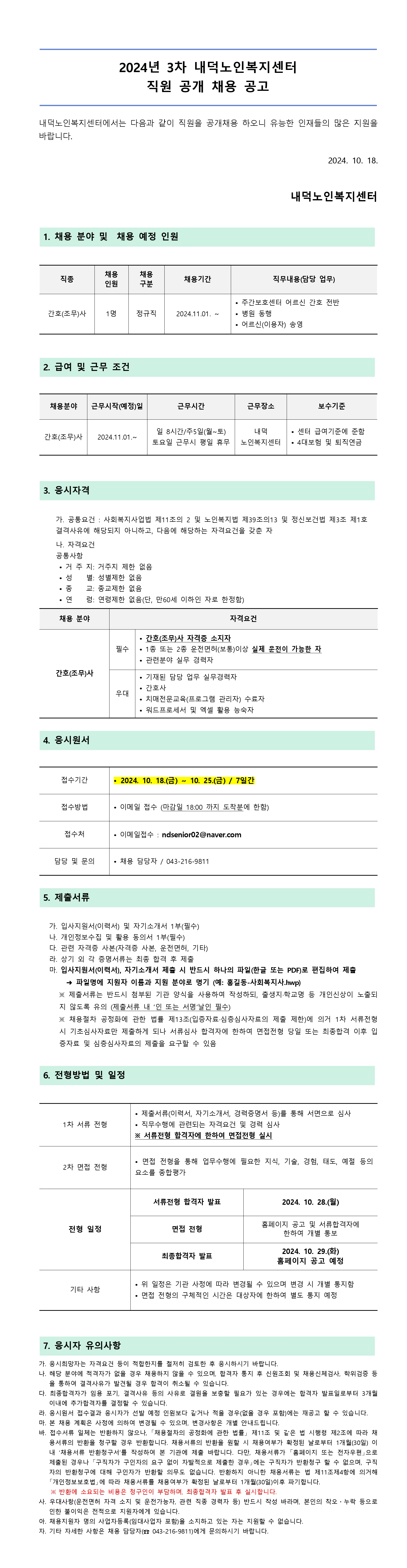 | 2024년 3차 내덕노인복지센터 직원 간호(조무)사 채용 공고 | |||