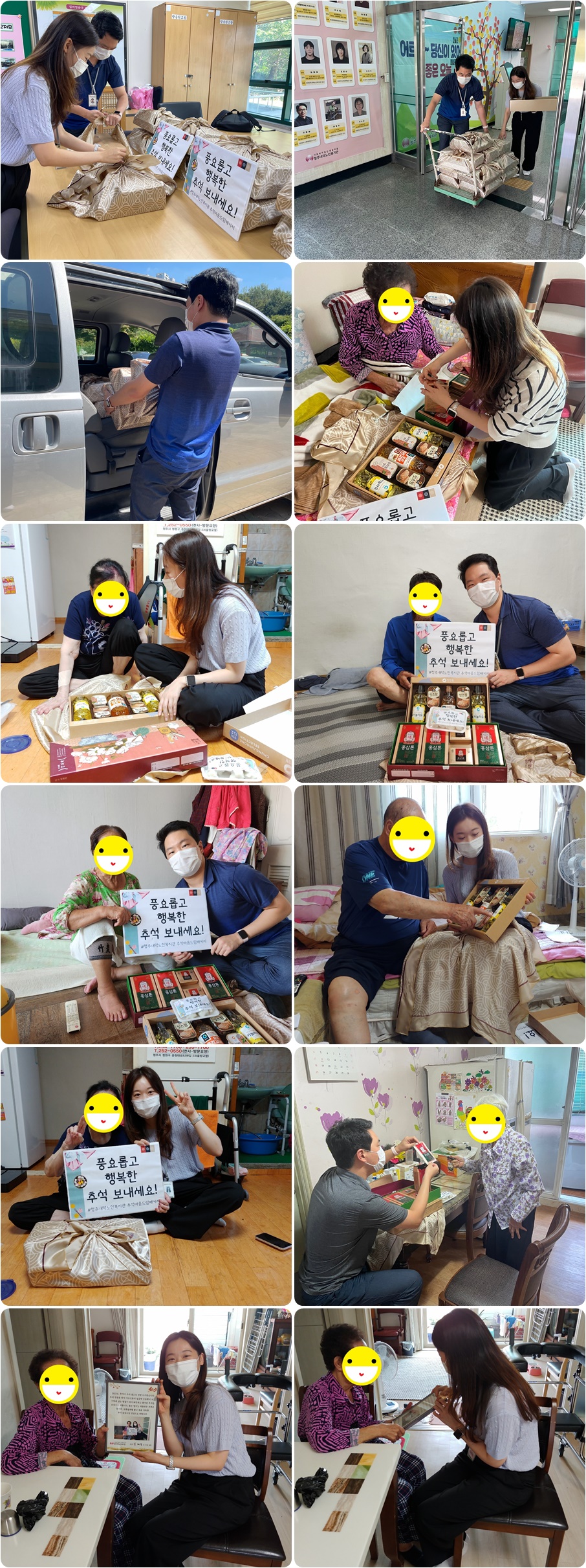 그리고 어르신들에게 특별한 추석으로 오래 기억될 수 있도록 즐겁게 웃으며 이야기 한 시간을 소중히 담은 사진을 촬영하여, 인화 후 안부 인사말과 함께 액자에 넣어 전달하였습니다.