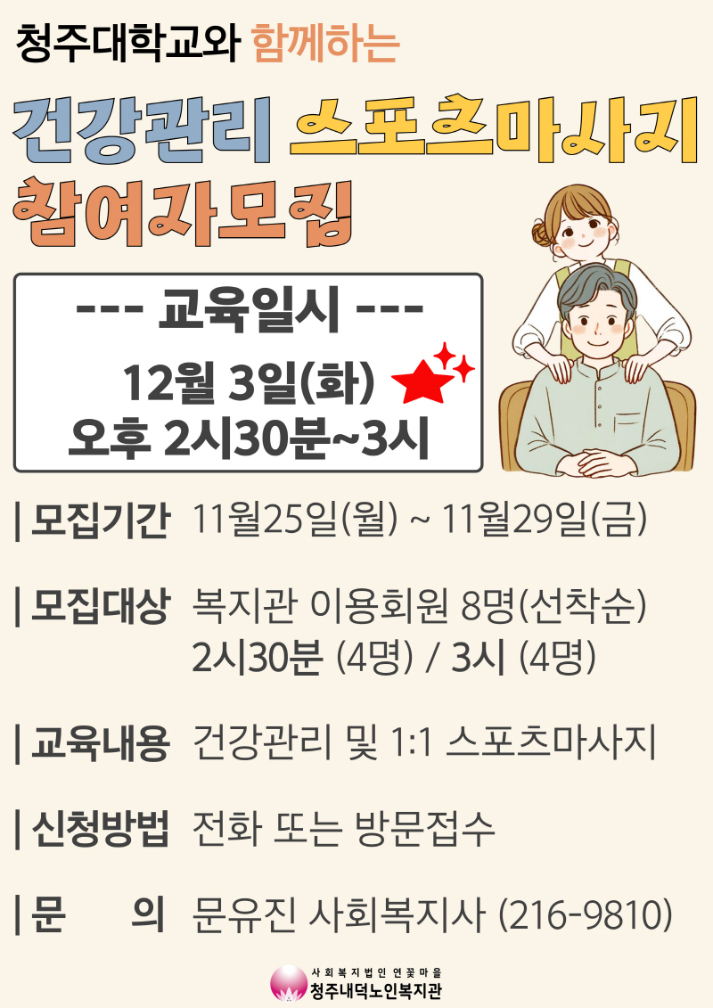 [모집] 건강관리 교육 및 스포츠마사지 참여자 모집